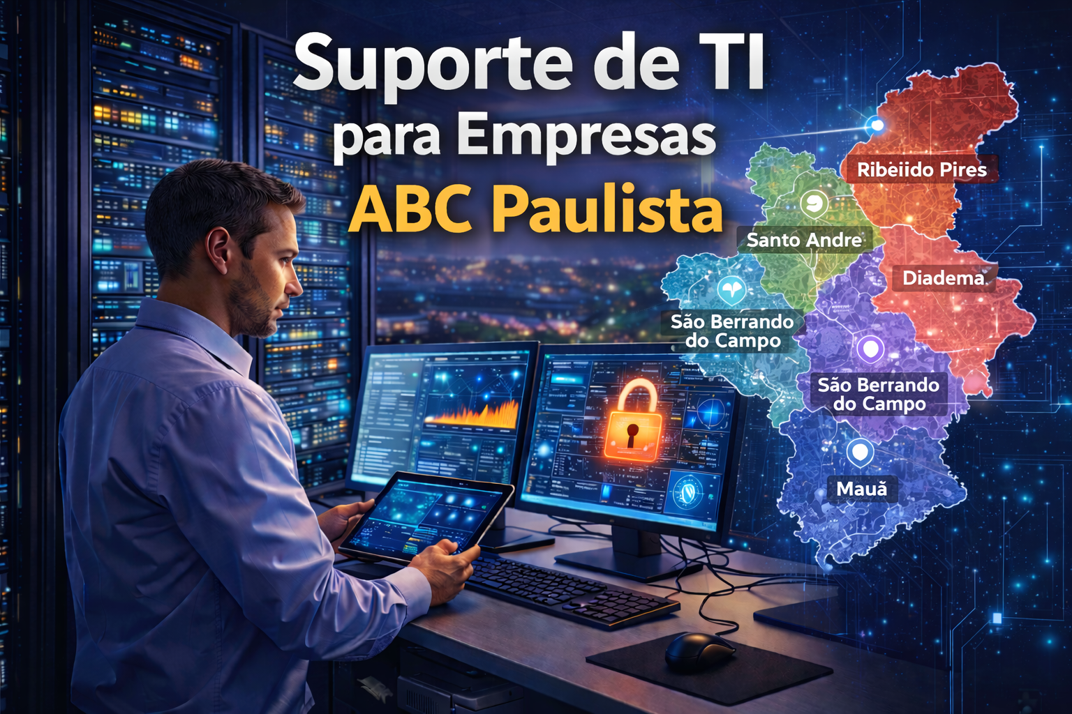 Além das cidades citadas, empresas da região do ABC contam com suporte especializado para manter sua infraestrutura tecnológica funcionando de forma segura.